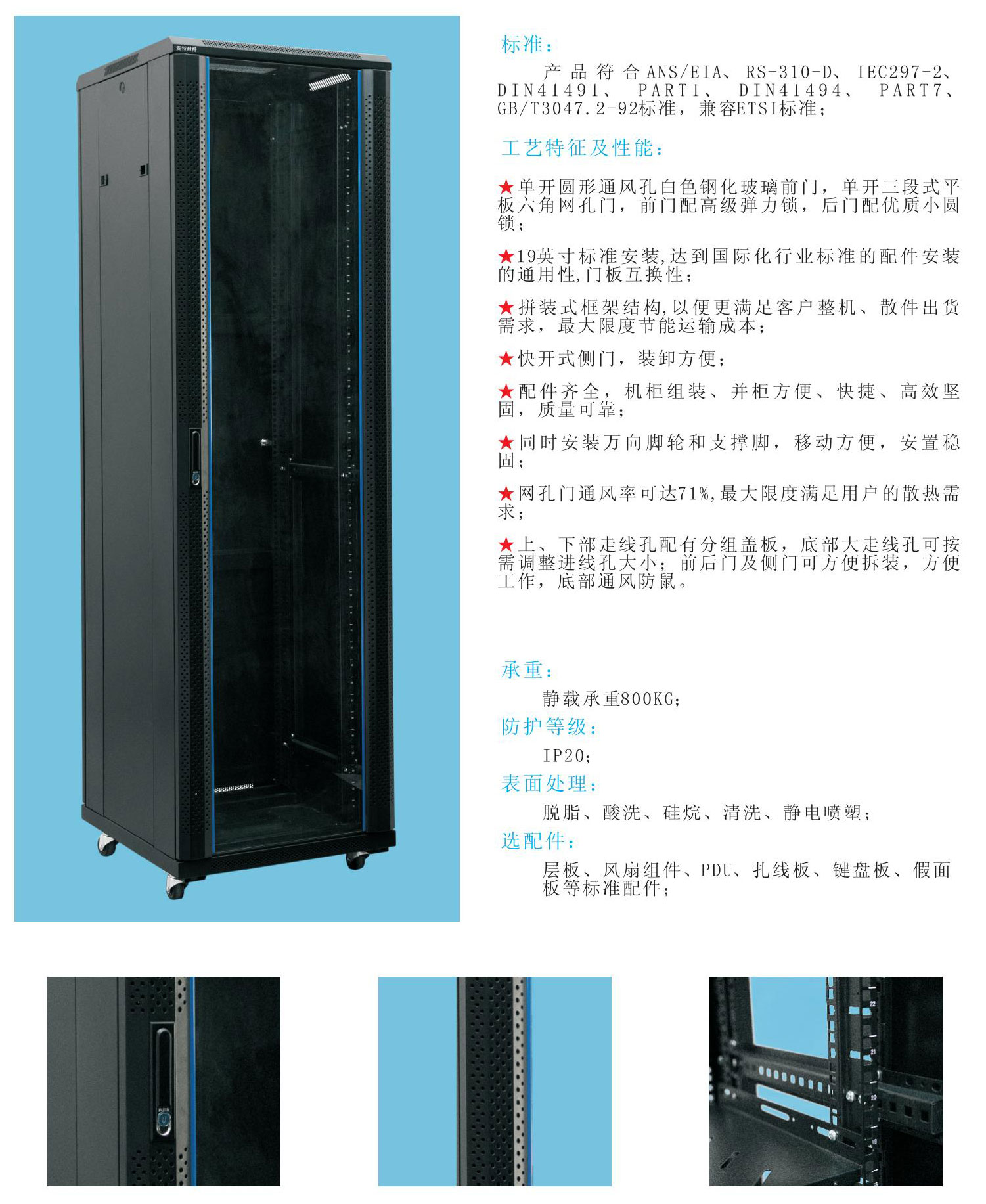 選配件:層板、風(fēng)扇組件、PDU、扎線板、鍵盤板、假面板等標(biāo)準(zhǔn)配件;